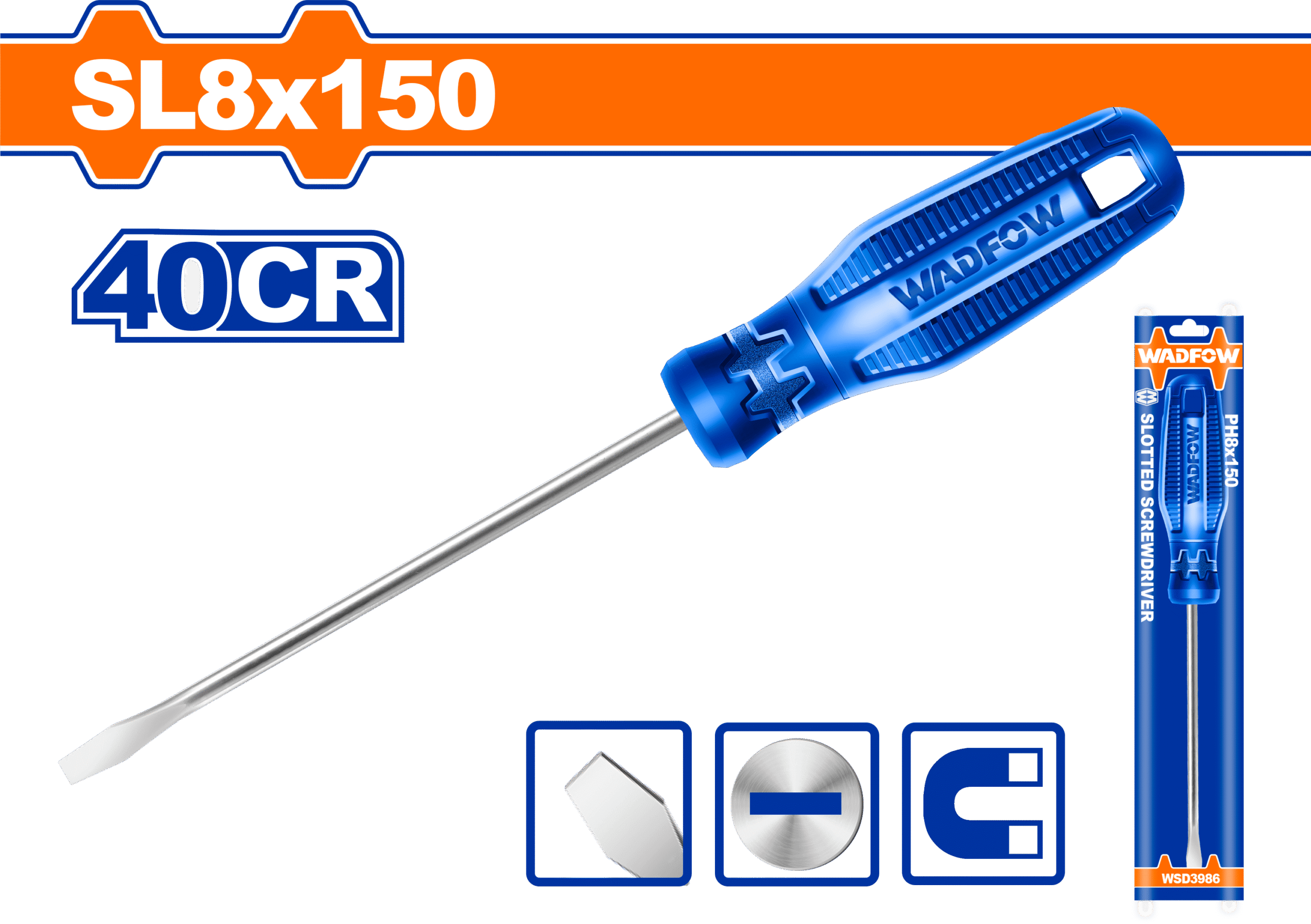 40CR, PH2, Vástago redondo Diámetro: 6,0 mm Longitud: 150 mm Embalado en bolsa de polietileno